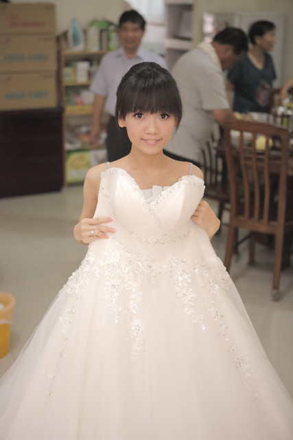 他以後應該會出現在婚紗工作室裡 然後很多人穿 而且我又在版上分享 不知道會不會很多小個子新娘喜歡這款的 不過我是第一手嘛~多少可以安慰一下 (笑)