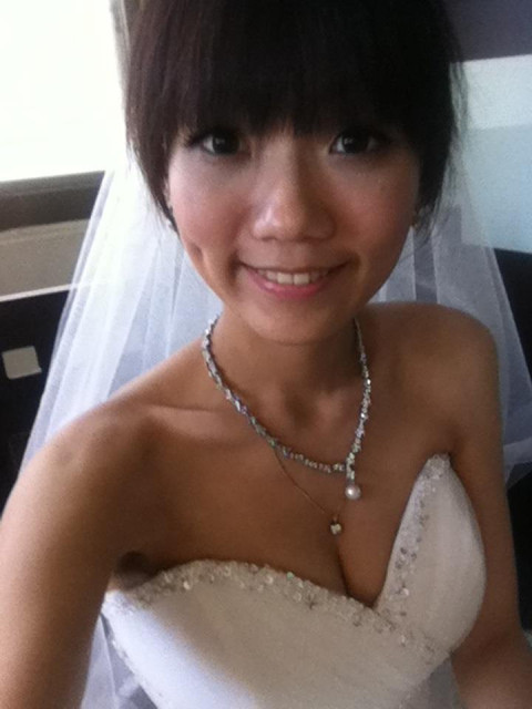 台幣五千多元。完全符合我心中的白紗: 桃心領 顯腰 顯胸 澎澎有水鑽