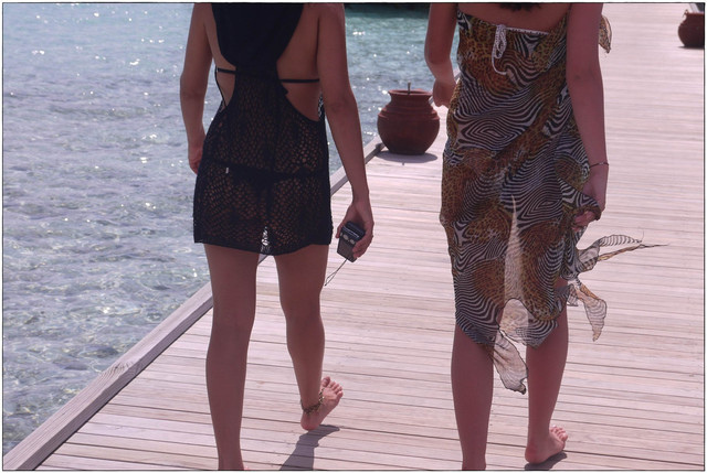 雖然大家都是直接穿比基尼啦 可是我怕黑 基本上在路上走時外面還會加衣服XDD